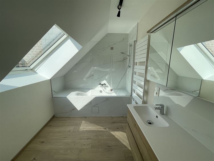 extrêmement lumineuse avec grande terrasse, jardin clôturé.On accède au parking